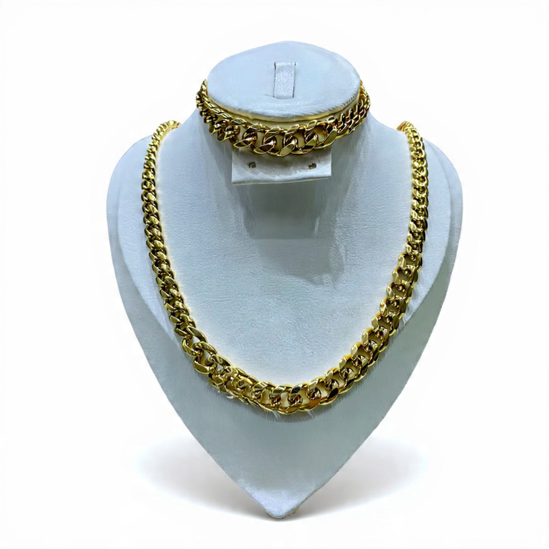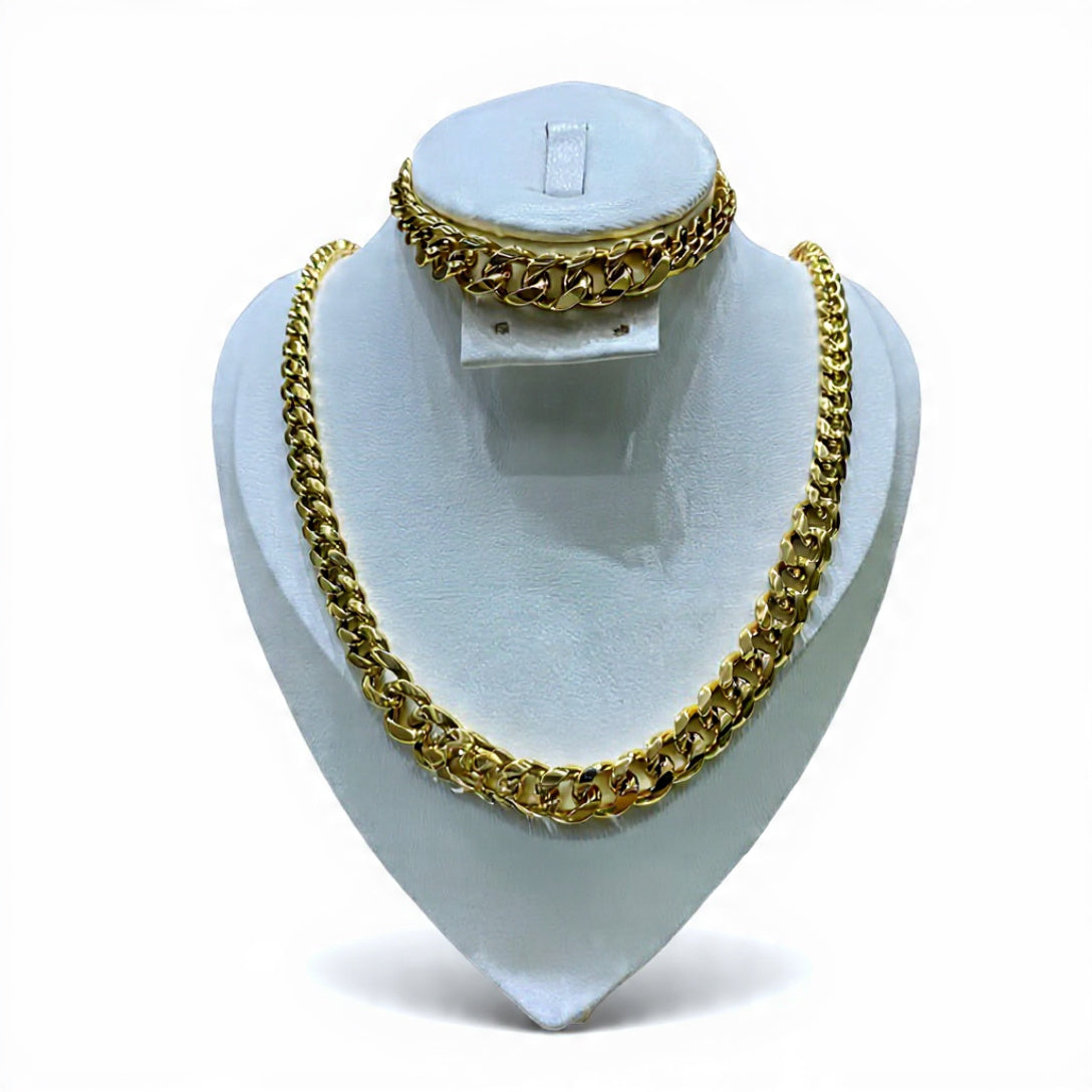 لا، هاد السلسلة والكورميط ماشي ذهب صافي، ولكن مطلية بطبقة ذهبية عالية الجودة كتخليها تبان فخمة وأنيقة، وتدوم مدة طويلة إلا تعاملت معاها بعناية (تجنّب الماء، العطور، والكيمياويات).